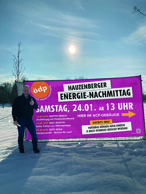 Bild: Ulrike Schott / Plakat mit Robert Zoidl, Ortsvorsitzender der ÖDP – Hauzenberg